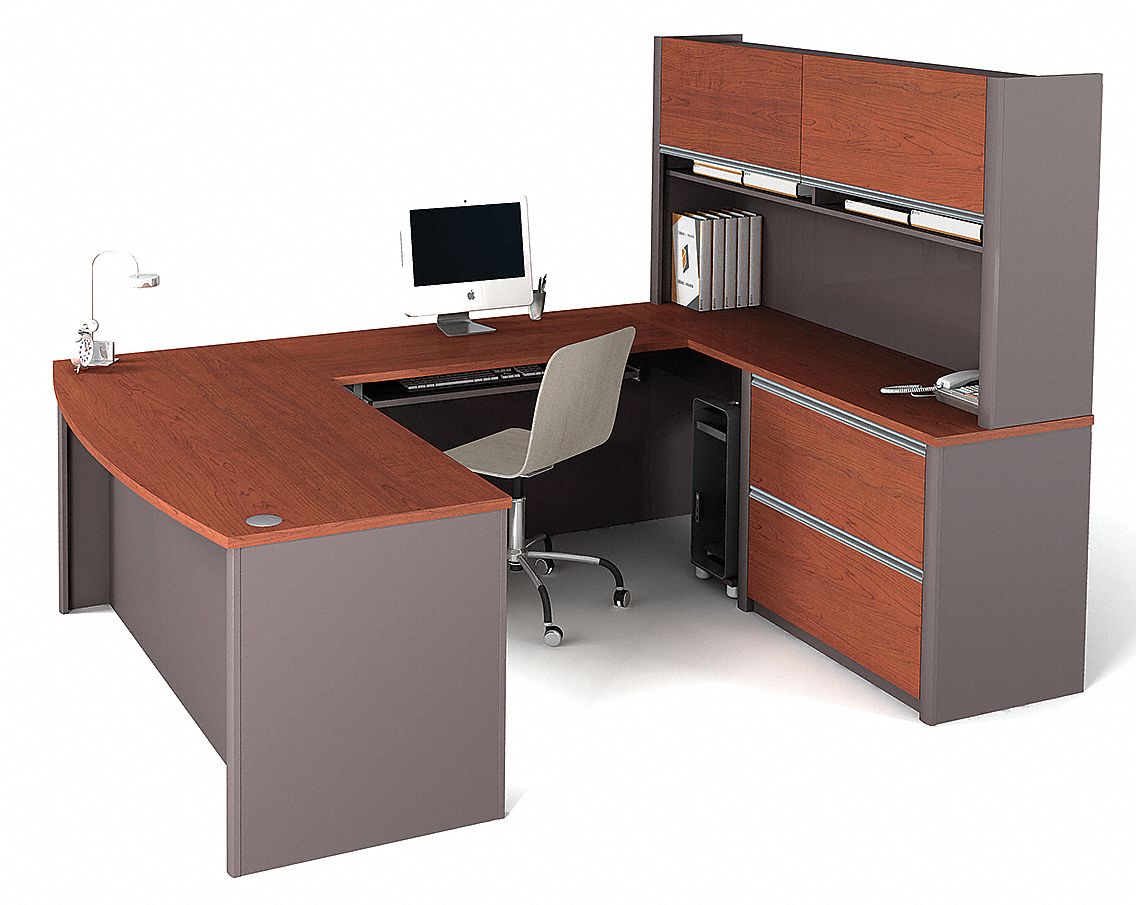 Bestar, universel collection, executive computer desk with pedestal and hutch. The rear part with shelves and file drawers, lighting. They are also excellent for doubling as a place to meet, as clients or customers can pull up a chair on one side of the u desk to meet with you. Ikea offers everything from living room furniture to mattresses and bedroom furniture so that you can design your life at home. Bush furniture cabot l shaped computer desk in espresso oak.
